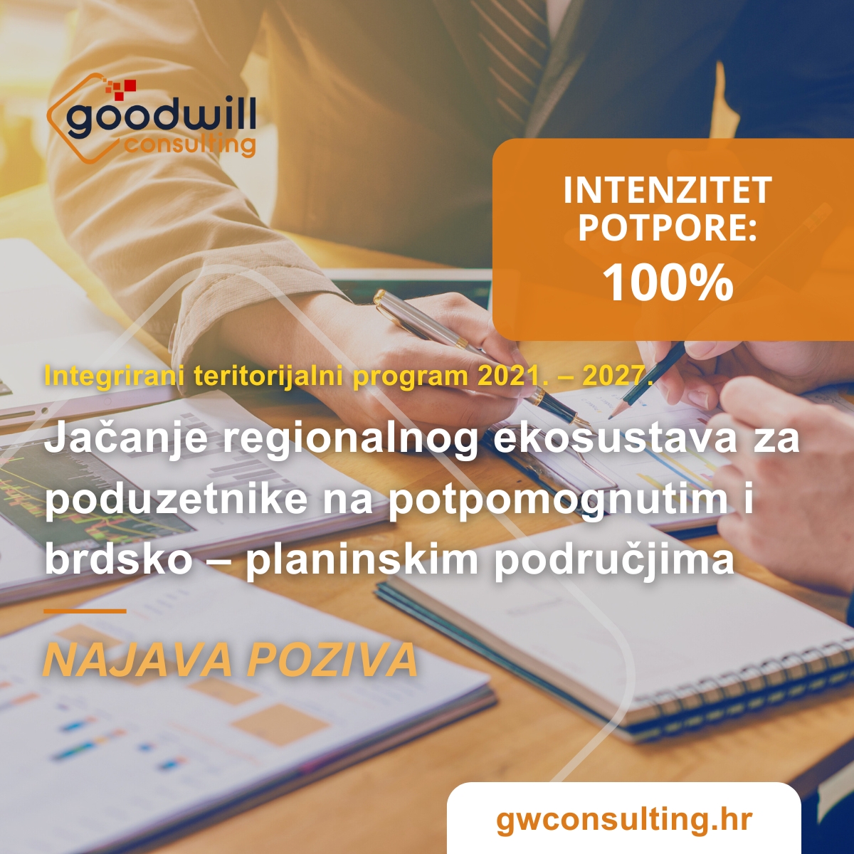 Najava – Poziva na dostavu projektnih prijedloga Jačanje regionalnog ekosustava za poduzetnike na potpomognutim i brdsko – planinskim područjima