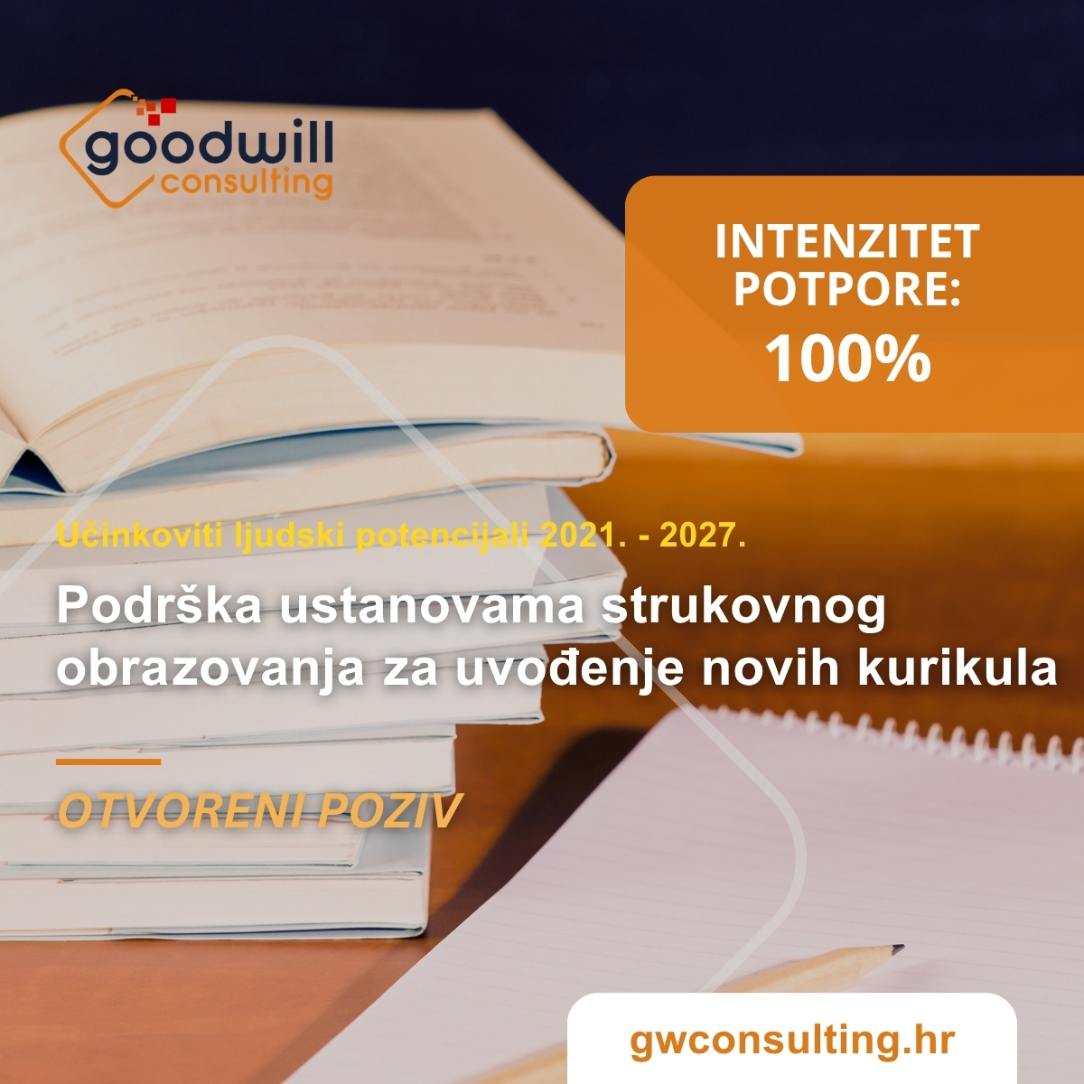 Svrha Poziva: pružanje podrške ustanovama strukovnog obrazovanja za razvoj i provedbu suvremenih kurikula, modernizaciju i unapređenje kvalitete nastavnog procesa te poboljšanje uvjeta za učenje temeljeno
